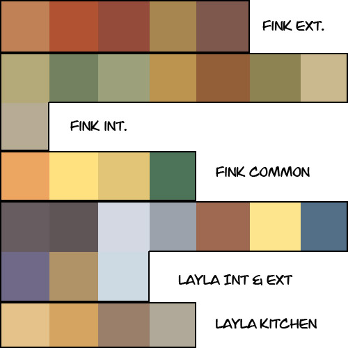This chapter contains a lot of back-and-forth between Fink’s ship and The Layla–both as far as the story jumping back and forth, and in the sense of the characters moving from ship to ship. To try to make this as non-confusing as possible I toned back the crazy non-literal coloring I’d been using in the first two chapters and developed a unique color palette for each ship and tried to stick to that for clarity’s sake. Here’s my color guide: