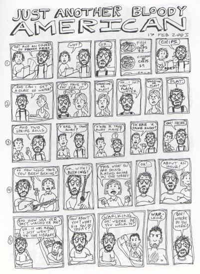 OK, I’d be lying if I told you I wasn’t a little disappointed that this issue of Phase 7 didn’t contain another completed chapter of Alec’s graphic novel in-progress, Basewood. On the other hand, since each page of Basewood looks like it takes about six months to complete, I guess that’s understandable. This issue is a sort of “best of” compilation of pages from Alec’s sketchbook going back a few years. I enjoyed this issue; it made me pine away a bit for the bygone days of the “sketch mini”–the cheap one or two dollar stapled minicomic of a cartoonist’s sketchbook excerpts. These days that format seems to have given way to the giant, copy shop-bound, expensive reproduced sketchbook that a lot of pros sell at conventions. I also really love the way Phase 7 has totally spurned the “hand silk-screened, silk thread bound, dye cut, etc.” minicomics trend and is keeping it pure and simple, Procellino style: straight-up black and white folded 8.5 x 11 copy paper.