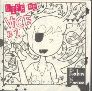 This is a mini I picked up just because it looked fun and was reasonably-priced; I know nothing about the cartoonist. Life of Vice takes place in a convertible cruising through the Nevada desert while the protagonist conducts an interview with rock-n-rollist/ex-wrestling persona/sex advice columnist/general partaker of debauchery, Becky Vice. There’s some obvious Hunter Thompson homage going on here of course, but not overly-so. Robin Enrico has a fun, visually appealing style and the size (5×5″), shape, and two-color cover of this mini make for a great-looking package. I occasionally got a little lost with the storytelling, but nothing majorly distracting; I’ll pick up more of these for sure next time we cross paths.