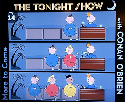 I’m not positive when this style made its first appearance–maybe the cover Ware did for McSweeny’s?–but it’s become enough of a stylistic fixture for him that it was recently parodied/saluted during Conan O’Brien’s run on The Tonight Show: