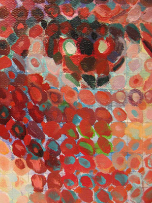 Close suffered a spinal artery collapse in 1988 and as a result is largely paralyzed. He continues to paint though, with a brush tied to his wrist. (The amazing Chuck Close: A Portrait in Progress is available streaming online via Netflix. I recommend it highly.) If anything, his art has become even more fascinating since then as his “pixels” become larger and more abstract. Here’s a more recent Close portrait, Lucas, along with a detail:
