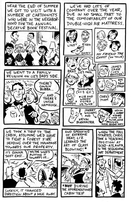 And, yeah, it’s a full-on six-page mini that’s all about what the Schweizers have been up to in the past year. Here’s a page that contains two things that made me laugh out loud: the drawing of “Sassy” and the name “Uncle Hamhock.”