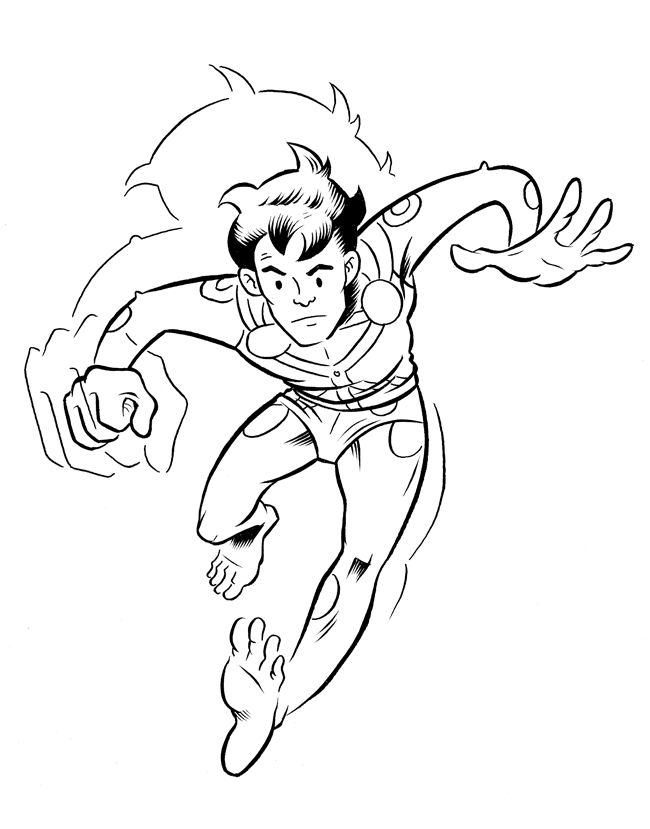 Here’s a pinup of Rac Shade, the main character from Steve Ditko’s DC series Shade the Changing Man. I did this as a “thank you” to send to the folks at Hot Sauce Productions who were kind enough to let us screen the recent Jonathan Ross documentary, In Search of Steve Ditko, at Heroes Con ’09. Shade’s color scheme is pretty simple, so I whipped up a quick color version as well:
