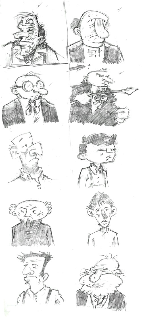 For the second part of the first act of Oyster War, I’ll be doing a a pretty textbook-style “gathering allies” sequence and so I’m needing to generate a crew (literally) of beat-down has-beens à la Terry Gilliam’s Baron Von Munchausen. As with most sketchbook endeavors, I think there’s maybe one or two usable concepts here, but that’s what working on one’s sketchbook is all about…
