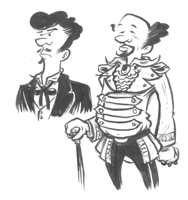 I don’t know if anything will come of this Count of Monte Cristo thing, but it’s at least something fun to work on in my sketchbook. This is another rumination on the character of Danglars (shown young and old here), who hits me as a real nouveau riche type who would probably be decked out in the latest fashion, no matter how ridiculous.