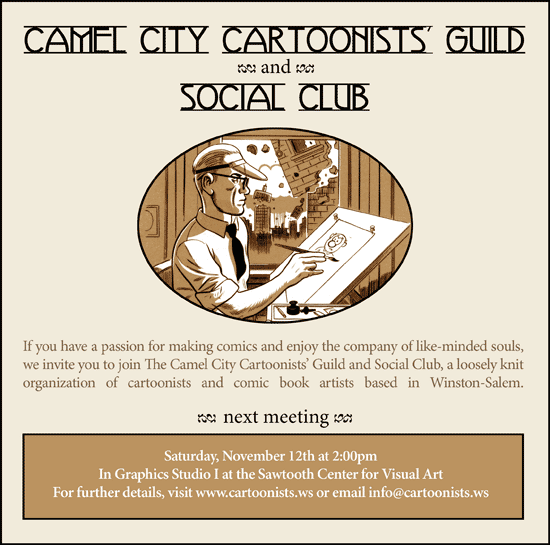 The first meeting of the Camel City Cartoonists’ Guild and Social Club is now officially scheduled: