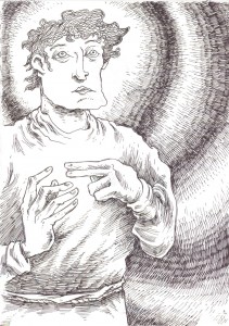There are three types of drawing I really should be doing regularly in my sketchbook: drawing from life, drawing from imagination, and goal-directed drawing (design work for comics projects, etc.). Unfortunately, it seems these days that all I’m really doing is goal-directed drawing. It’s curious–when I was younger (high school, college) I was completely opposite that: almost entirely drawing from imagination. Last night I tried to get back to some drawing from imagination, though.