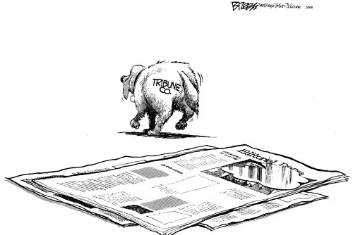 Black Ink Monday, a non-violent protest by the Association of American Editorial Cartoonists (AAEC), is a response to the Tribune Company’s recent elimination of editorial cartooning positions at several of its newspapers, as well as a commentary on newspapers everywhere who have lost sight of the value of having a staff editorial cartoonist.