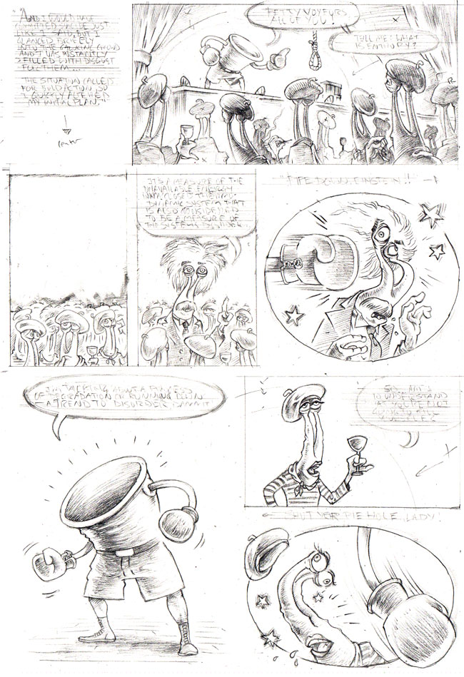 I have to say: I’ve really been enjoying working on this and I can’t wait to ink this page. In fact, I’ve found that I’ve been subtly procrastinating of late, putting off good-paying freelance work to make room for the ol’ Boxing Bucket. This is a dilema no one should face in a rational society.