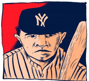 Yep, another Tuesday portrait night has come and gone. Last night’s subject: Babe Ruth. I think the inking here is probably the best part of the drawing; the likeness itself isn’t very good. (I think the overall face shape is the main culprit–too gaunt/angular.) Someone on Twitter thought the red/blue color scheme was an Obama riff. It’s actually just the result of my using Yankees blue and red for the color palate. I’d love to tell you this is a mediocre drawing because I “hate the Yankees” as folks say, but it’s actually just because I’m not great at likenesses… but that’s the point of trying to do a likeness once a week, right?
