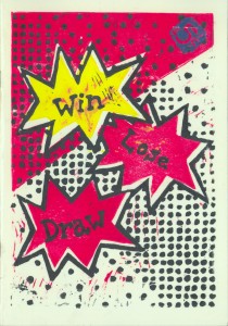 Once the students have completed this two-page story–filling in all the required narrative to do so–and are thinking they’re done, though, I then (time allowing) hand out an additional sheet of bristol board to everyone, along with the missing third (red) card that has yet another “change of state” on it.