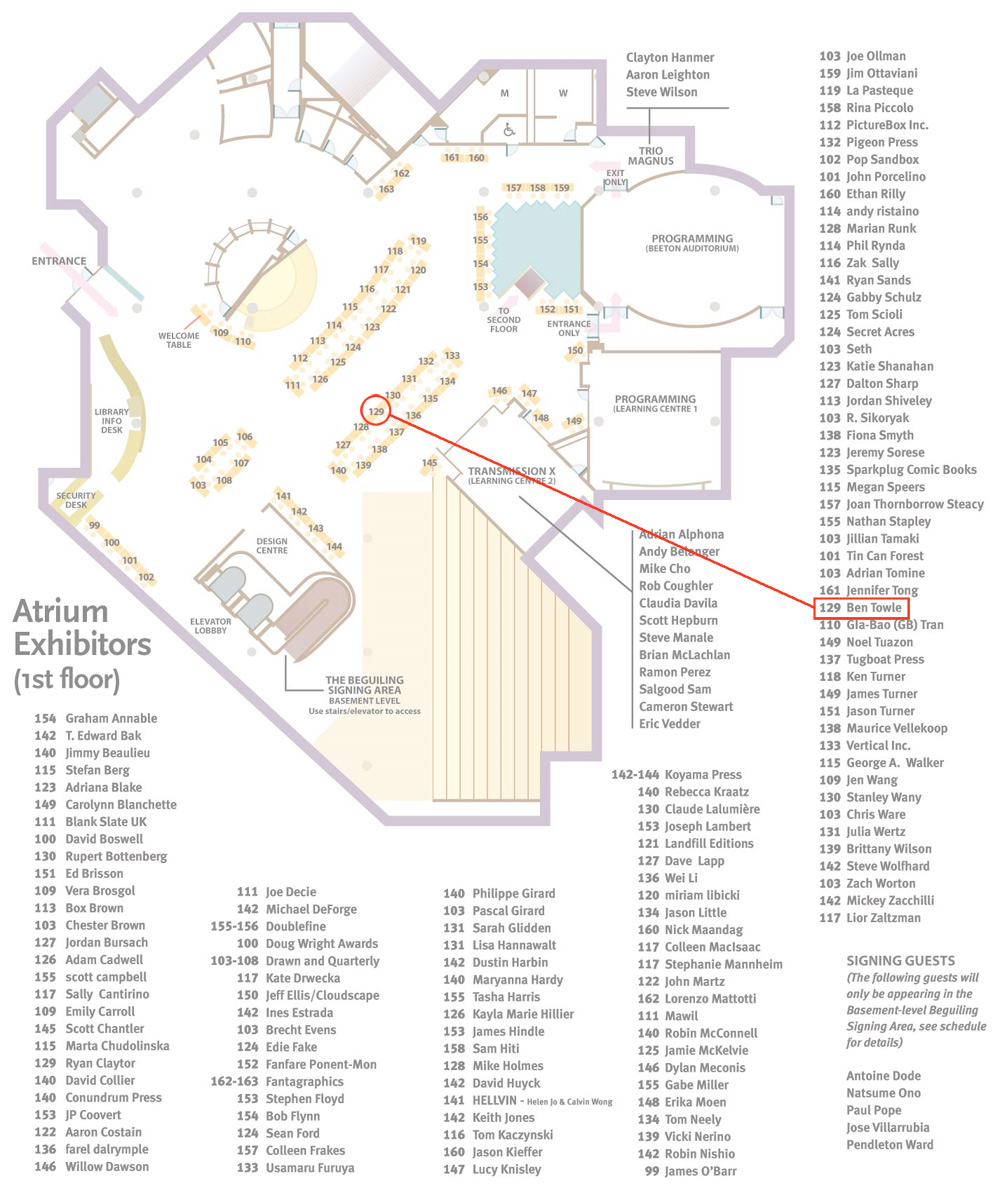 Q: Why have you never been to TCAF before? What’s wrong with you!A) I guess I’ve jus t been waiting for the proverbial “stars” to line up. I do a number of comics festivals each year and I had to find a good year to work TCAF into my schedule. I’d been hearing so many good things about TCAF that it had just reached a boiling point this year. I had to take the plunge. B) Lots of stuff. Don’t get me started about my lower back pain. (more here…)