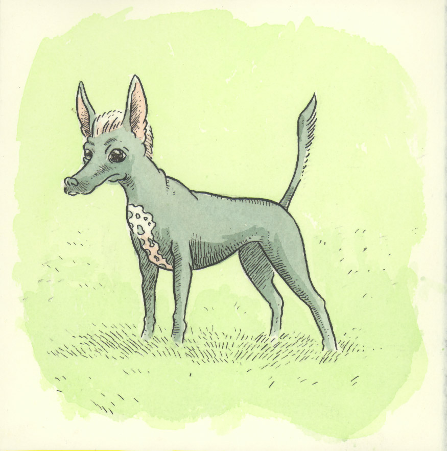 Well, I’m glad I held off on any dog breeds until now. I suspected I’d be glad to have the whole “arsenal” of breeds available for some difficult letter–and that for sure turned out to be the case. You may know this dog by the name “Mexican Hairless,” but it’s also knows as the Xoloitzcuintle (and that’s its breed name, not a Latin species name–I’ve been trying to avoid those).