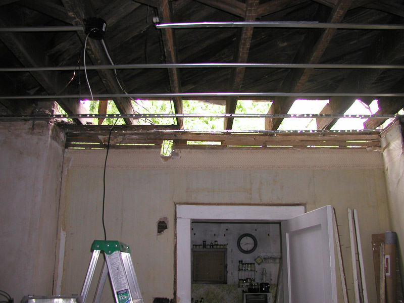 With the main portion of the old roof gone, we’ve now got this lovely open air effect in our dining room.