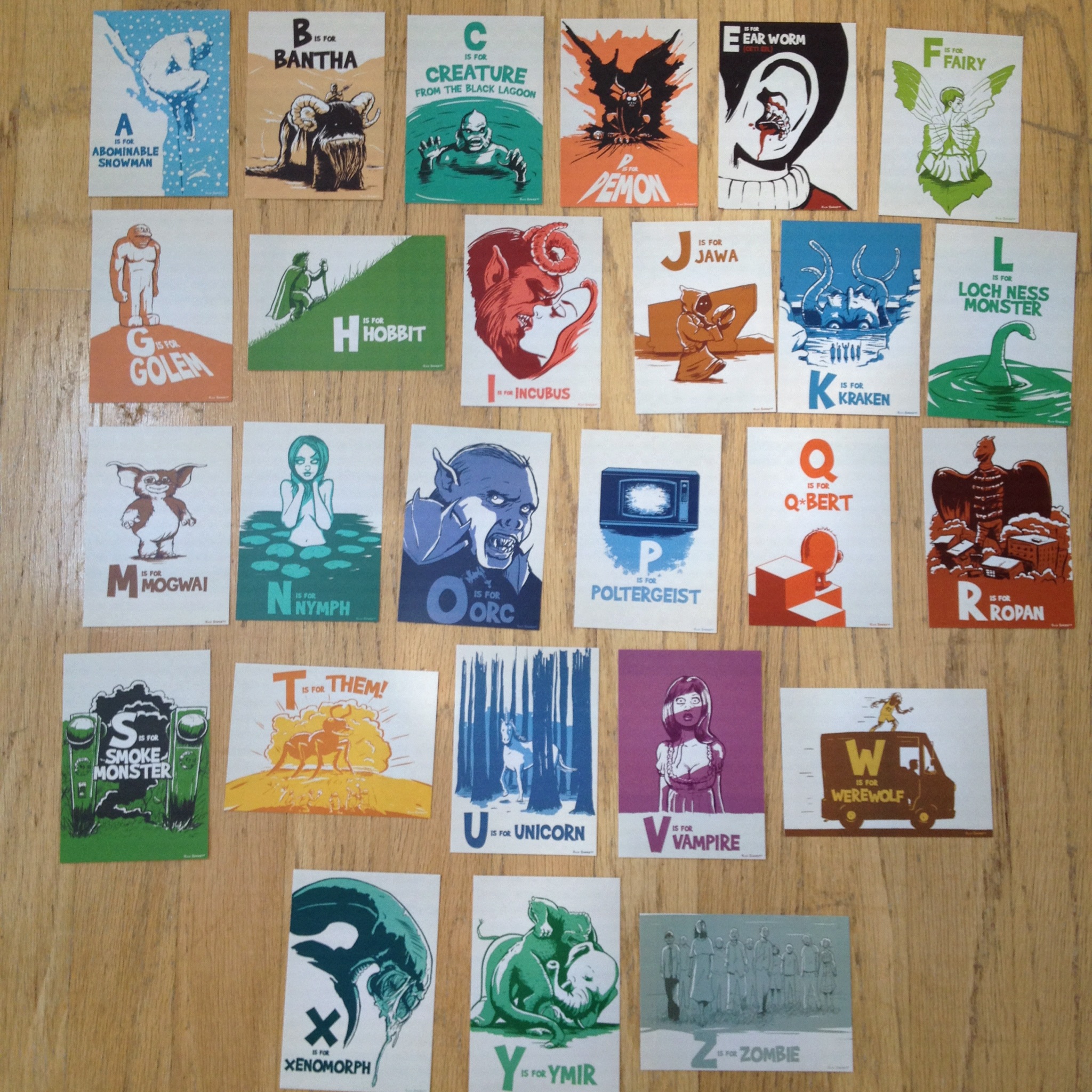 Kaijuphabet is a collection of alphabetical illustrations of Japanese movie monsters originally created for the online drawing project, AlphaBeasts. This mini will help you learn your ABC’s while preparing you to identify the next rubbery behemoth to rise from the ocean and destroy your city!