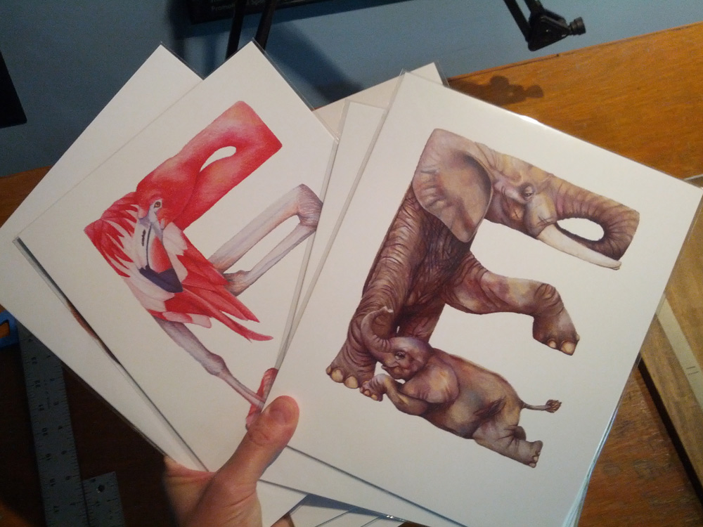 Casey has a full alphabet’s-worth of animal letters available as prints. They’re full-color and you can see the whole range of them in the poster listed next…