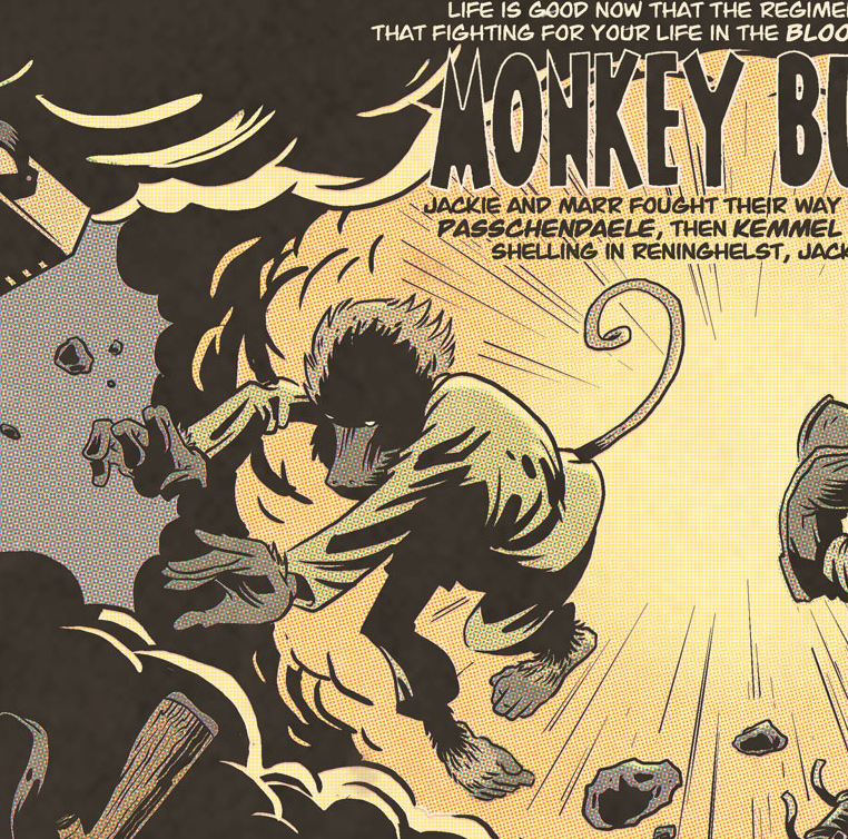 I tried to remain as focused as possible on Oyster War in 2013, but I did do a few other things comics-wise. “Monkey Business,” a one-pager I drew last year about Jackie the baboon, who fought in WWI, finally saw the light of day in the Panels for Primates anthology, a benefit book for the Primate Rescue Center in Nicholasville, KY. Buy it here on Comixology.