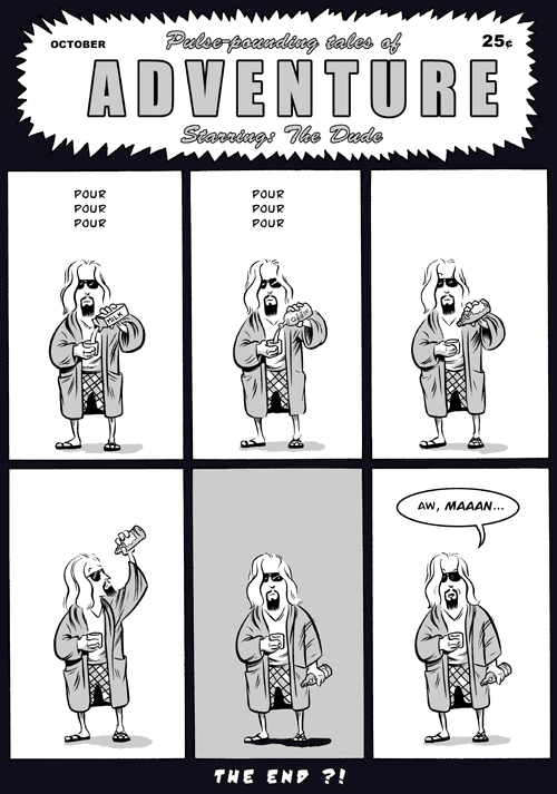 To celebrate, SLG Editor-in-Cheif, Jennifer de Guzman put together an 20th anniversary anthology for head honco Dan Vado. The included stories were all by SLG creators and most involved SLG histrory or referrenced things that Dan is known to like–stuff like hockey, tikis, and in the case of my submission, The Big Lebowski.