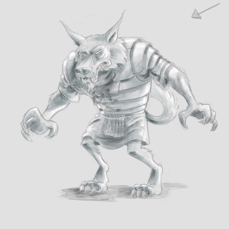 The assignments built on each other so I really don’t remember how things broke down lesson-by-lesson, but the first few assignments all dealt with a single character. The initial assignment was to do a rough digital sketch. Here’s mine: