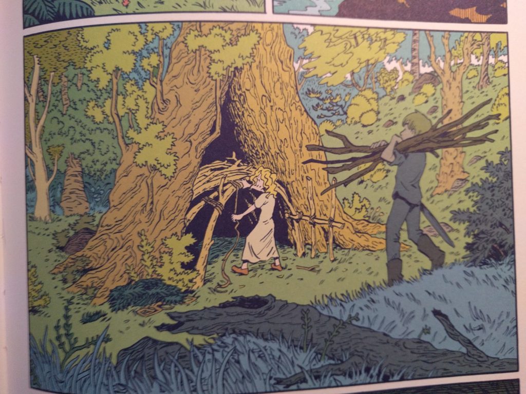 And what about the story? I’ve somehow managed to graduate from a respectable liberal arts college without reading any permutation of Tristan and Iseult, so I can’t say with a ton of authority what elements of the story are traditional and what are coming from Agnès Maupré. The only notable element of the comic’s narrative that I couldn’t find mention of in the Wikipedia entry on Tristan and Iseult nor the Wagner opera adaptation of it was some interesting thematic elements about vegetarianism. In the comic, King Mark is a staunch vegetarian who nonetheless has to lead his court on hunting parties. At the climax of the book, Tristan is mortally wounded during a hunt–again, not something I could find mention of online.