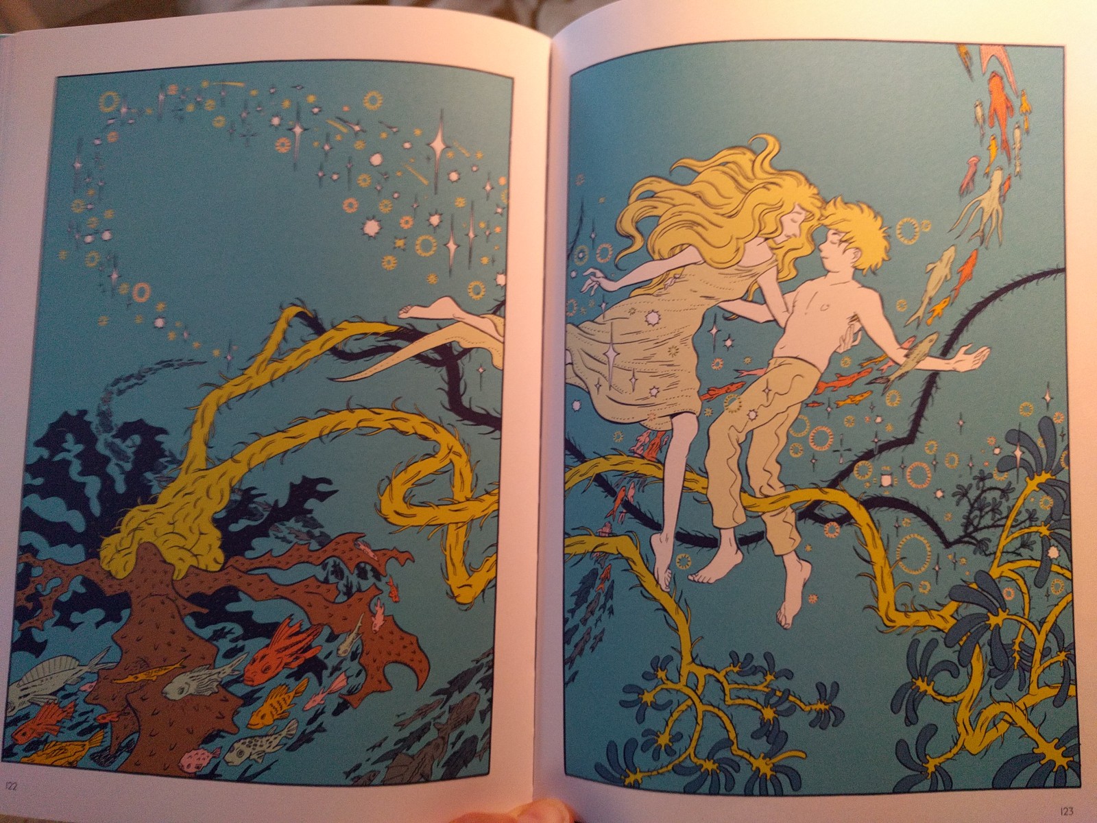 What sold me on the book (figuratively and literally) was the coloring. If you know me via this blog or on twitter, you know I’m a sucker for coloring that’s (1) flat, with little to no rendering, and (b) non-literal. And that’s exactly the way this book is colored. Here’re a few examples: