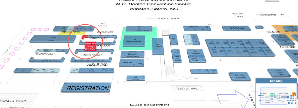 That’s right: I’m making a rare when-I-don’t-have-a-new-book-out appearance at a con. What can I say? It’s in my hometown. You can find me in Artists Alley at the space shown on the map below. More info at the Wizard World site. I’ll have my usual fare: Oyster War, various minis, a smattering of original art. Look for the big Oyster War banner and my con-fave Peanuts tablecloth! I’ll be cosplaying as a middle-aged cartoonist who wants you to buy some stuff.