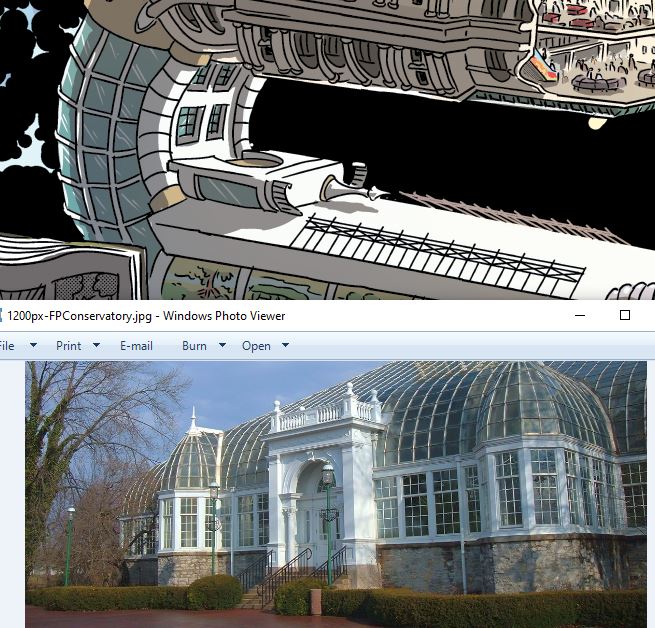 I needed some elements for the curve of the upper “C” and grabbed them from the Franklin Park Conservatory–a location totally unrelated to the show, but it’s a cool building!