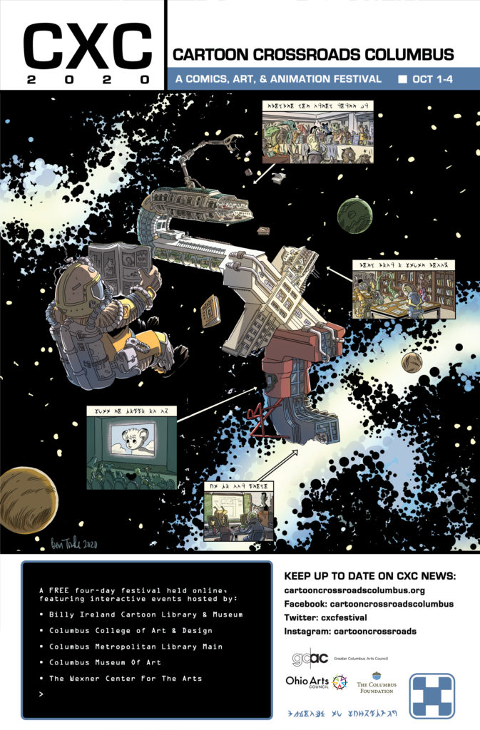 Cartoon Crossroads Columbus (CXC) is one of my favorite comics festivals–and that was the case well before I was a Columbus resident–so it was a real honor to be asked to do this year’s poster. The event just officially released the poster along with a preliminary guest list, all of which you can find on their site here.
