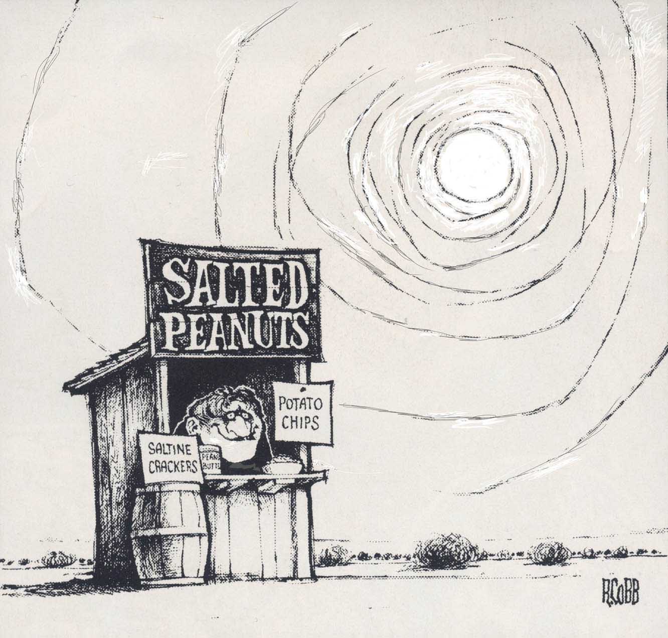 Cobb says the “hazzard/danger” symbol (the checkerboard) was deliberately made to look like the logo for pet food brand Purina because the Nostromo‘s crew were “alien chow.” Incidentally, Ron Cobb is another comics-connected element to the poster: in addition to his well-known work on films like Alien, Total Recall, etc. he’s a pretty good cartoonist, too!