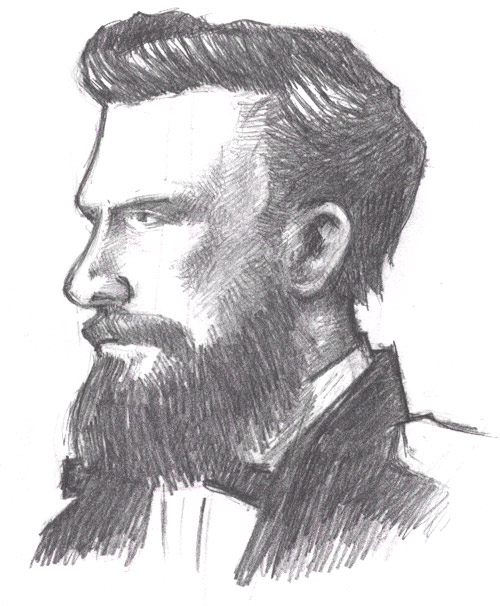 Confederate submariner and Maryland Oyster Navy Captain, Hunter Davidson (original sketch, and sketch with underdrawing removed with Photoshop):